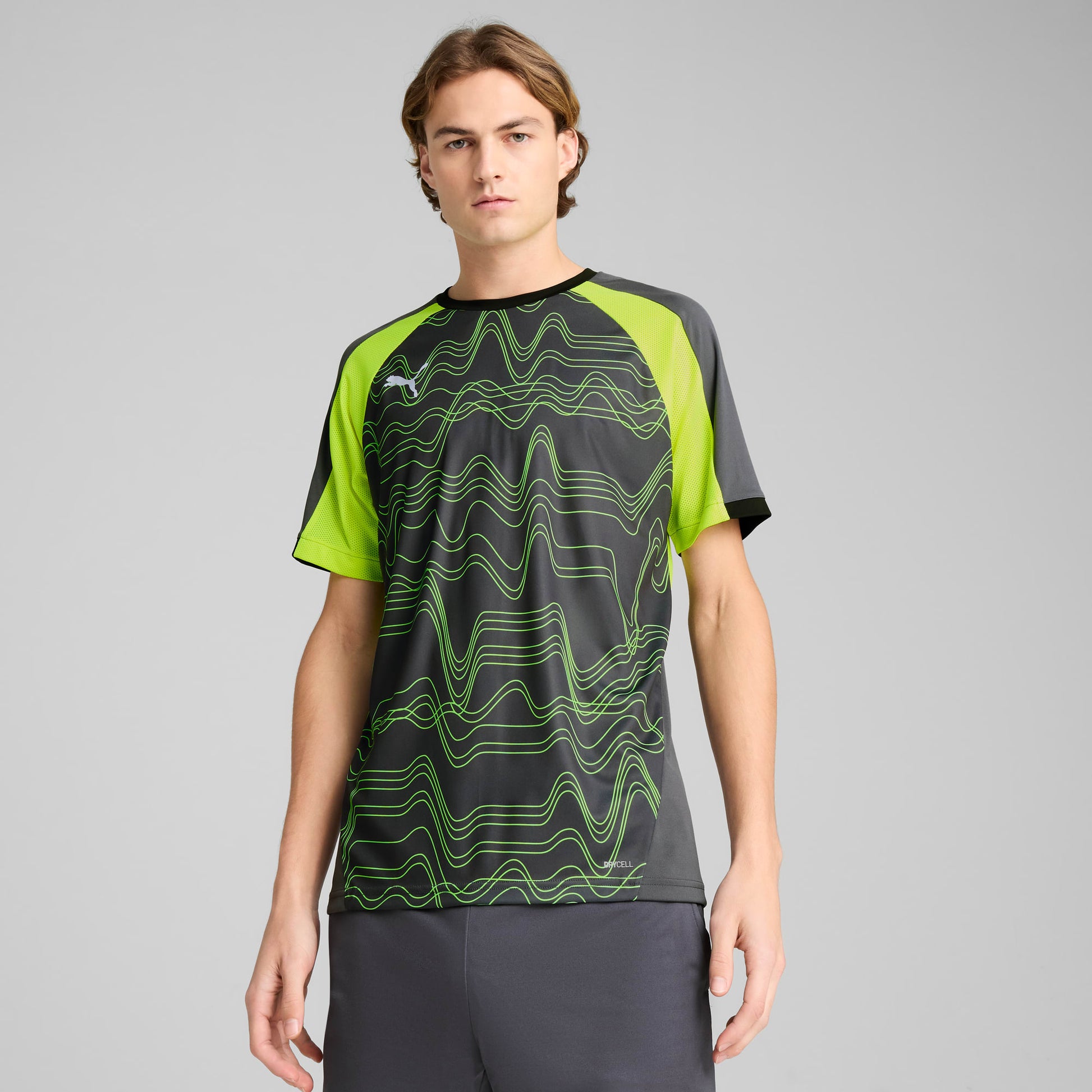 Ignite your passion for football with the PUMA IndividualLIGA Graphic Jersey, designed for peak performance and style. Featuring advanced dryCELL technology, this jersey helps keep you cool and comfortable on the field. The dynamic all-over print and heat transfer PUMA cat branding provide a striking look.